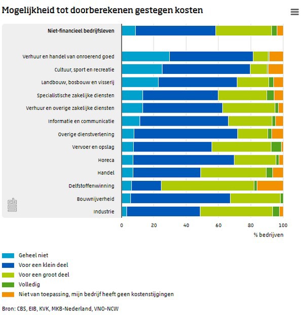 6 op 10 kunnen kostenstijgingen niet of voor klein deel doorberekenen