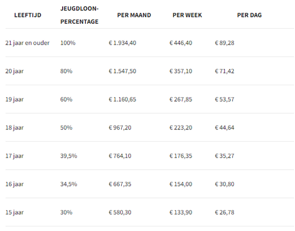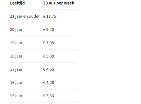 De uurlonen in de tabel zijn naar boven afgerond. Omrekenen leidt tot een iets hoger bedrag per dag, week of maand dan het wettelijke minimum. In de tabel per maand, week en dag vind je de officiƫle bedragen.
