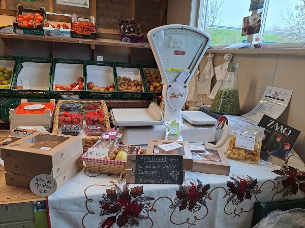 Het assortiment is breed maar de volumes zijn weg. Klanten komen voor een pondje aardappelen en een paar appeltjes. “Mijn oudste klant is 94 jaar en komt nog wekelijks. Veel van mijn klanten die vroeger een gezin hadden, zijn nu 1 persoonshuishoudens.” In coronatijd hebben wel nieuwe klanten de weg naar zijn boerderij-winkel gevonden, door het fietsstalletjestoerisme. Vergrijzing van de bevolking maakt ook dat er klanten komen en de winkel steeds meer een sociale functie krijgt. “Ouderen gingen vroeger het bejaardenhuis in, nu moeten ze thuis blijven wonen en zitten daar de hele dag in hun uppie. Ik ben een goed excuus om de deur uit te gaan. Er zijn ook steeds meer mensen die met pensioen zijn en een elektrische fiets aan hebben geschaft. Die moeten toch ergens naar toe fietsen, dus als het een beetje mooi weer is, komen hier ook veel boerenstalletjes-toeristen.”