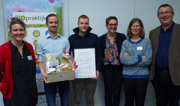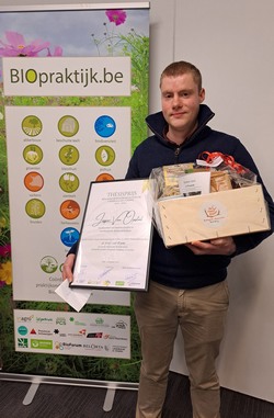 Op donderdag 12 januari werd tijdens Agriflanders op het seminarie 'Bio, een keuze voor de toekomst' voor de derde maal de thesisprijs voor de biologische landbouw en agro-ecologie uitgereikt door het Vlaamse BioKennisNetwerk (Biobedrijfsnetwerken CCBT, Living Lab Agroecologie en Biologische Landbouw). Jasper Van Opstal, afgestudeerd aan de KULeuven, ontving een geldprijs van 500 euro en felicitaties van de jury voor zijn masterproef 'Haalbaarheid van maaimeststoffen in een biologische productiemethode'.
