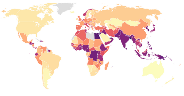 Maar in hoeverre is het überhaupt mogelijk om alle voedselhandel stop te zetten en alleen voedsel uit eigen land te eten? Deze nieuwe studie, gepubliceerd in One Earth, onderzocht voor alle landen of hun inwoners gezond kunnen eten met alleen voedsel van eigen bodem. "We zien dat ongeveer de helft van de wereldbevolking in landen woont die te weinig voedsel kunnen produceren", zegt Navarre.