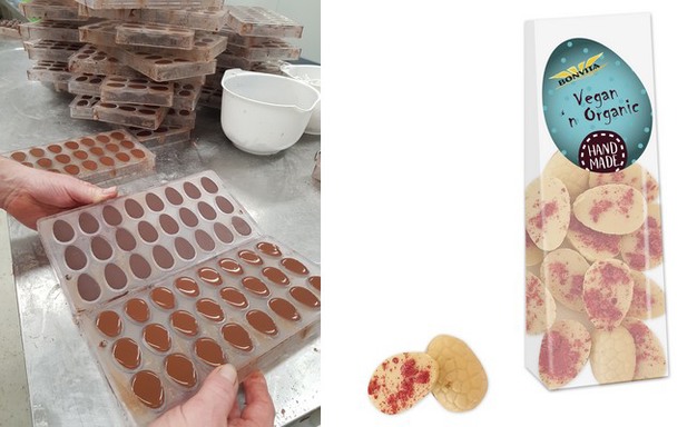 Een andere bijzonderheid zijn de paraline eitjes. Die worden bij Bonvita heel ambachtelijk gemaakt. "Als de vormen met halve eitjes zijn gevuld met chocolade worden ze weer 'afgegoten'. Hierdoor blijft een laag chocolade achter en worden de vormen opnieuw gevuld, deze keer met praline. Deze praline vulling bestaat uit hazelnootpasta gemengd met een deel chocolade. Dit is geen goedkope keuze, niet door de arbeid en niet doordat er geen suiker wordt toegevoegd als vul- en zoetmiddel maar uitsluitend hazelnootpasta."