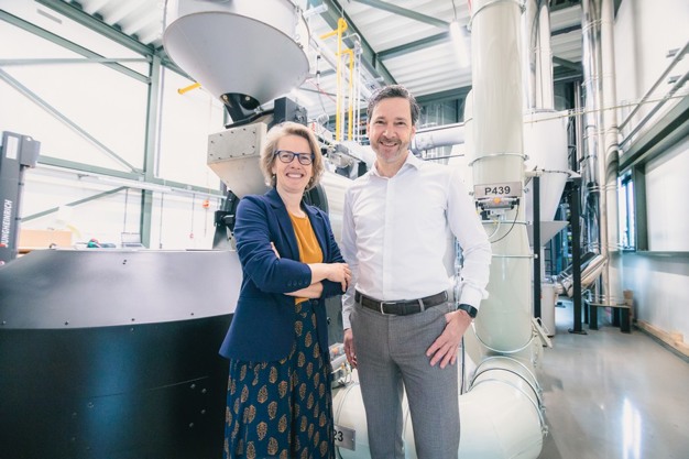 Directieleden Mikkel Levelt en Bert Jongsma voor de nieuwe koffierooster.