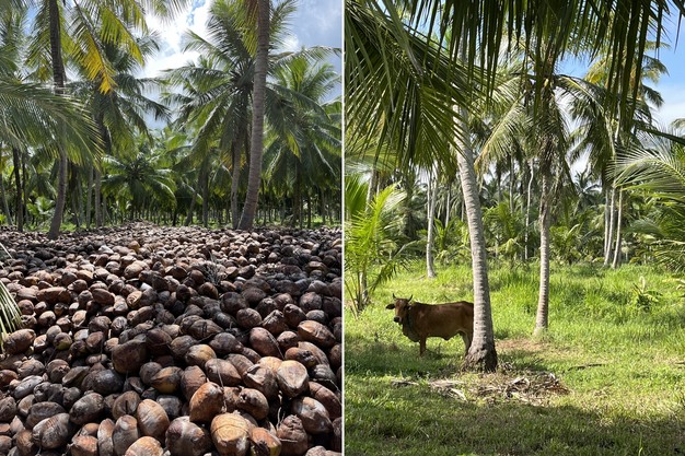Werken alle boeren in dit project al volgens de principes van regeneratieve biologische landbouw? Anne Floor: "Goede vraag en het antwoord hangt af van aan wie je het vraagt. De term 'regeneratief' is nog niet duidelijk gedefinieerd, vooral niet in Europa, maar wij hebben ervoor gekozen om het nieuwe Amerikaanse label Regenerative Organic Certification, ofwel ROC, te volgen. We geloven dat de biologische boeren in Sri Lanka, vooral degenen die al Fairtrade gecertificeerd zijn, goed in staat zijn om aan de eisen te voldoen. Sociale certificering is immers een toetredingscriterium voor ROC. Ze moeten nog wel slagen voor een audit om aanvullende indicatoren te verifiëren - voor bodemgezondheid, biodiversiteit en dierlijke integratie - om het ROC-label te kunnen claimen. Bodem- en dierenwelzijn maakt al deel uit van hun culturele gewoonten, aangezien elke boerderij meestal een paar koeien/runderen in de familie heeft en de mest van deze dieren hun bodem enorm verrijkt. We willen dit proces graag met hen en geïnteresseerde kokosnootklanten doorlopen! We brengen praktijkervaring mee van ons cacaoproject in Sierra Leone, één van de eerste projecten met het ROC-label."