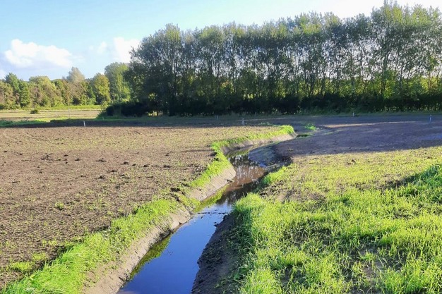 De nieuwe afgegraven infrastructuur van slootjes stroomt gelijk vol. Foto: Sprinklr