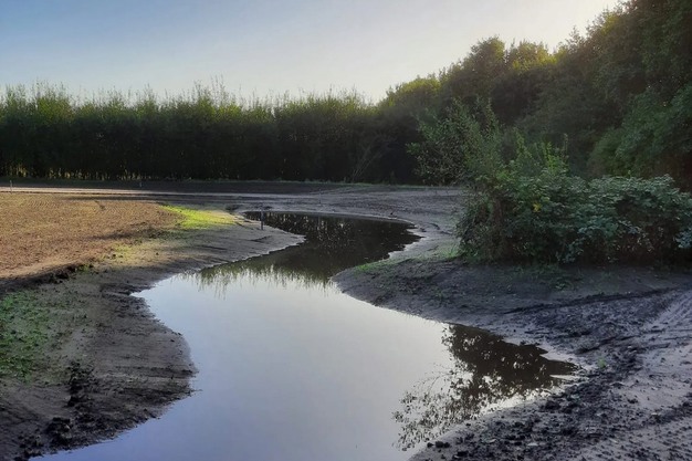 Aan het einde van de waterweg vormt zich dan een lager gelegen poel waar reeën kunnen komen drinken. De eerste afdrukken van hoeven zijn al gespot! Foto: Sprinklr