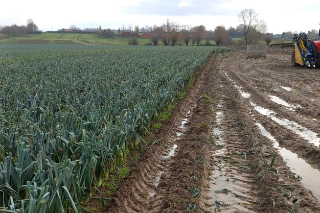 Hijzelf ervaart vooralsnog minder hinder van de nattigheid van de afgelopen weken. "Ook voor ons is het natuurlijk echt een strijd tegen de elementen, maar de schade valt relatief gezien gelukkig nog mee. Het is voor velen echt een drama geweest, maar wij krijgen de bakken nog altijd goed gevuld door onze machines met rupsbanden", legt de teler uit het Vlaamse Hooglede uit. "Wel zien we dat kwaliteit er door de regenval niet op is verbeterd. Bovendien vraagt het veel meer tijd en arbeid om de prei schoon aangeleverd te krijgen met al de modder die eraan blijft hangen. Vorige maand ging dat heel vlot, maar dat is nu wel wat vertraagd."