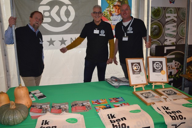 Namens Stichting EKO-keurmerk stonden Poppe Braam, Bavo van den Idsert en Harrie Janssen op de Organic Foodfair van BD-Totaal in november.