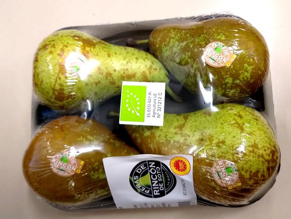 "Zo haalt de conventionele Rincón de Soto peer met oorsprongsbenaming van maat 60-65, verpakt in eenlaagse kartons, momenteel en prijs rond de € 1,20 per kilo, terwijl de biologische Conference peer van maat 60-65, en zelfs maat 55-60, in bulk verkocht wordt tegen € 1,80-1,90 per kilo."