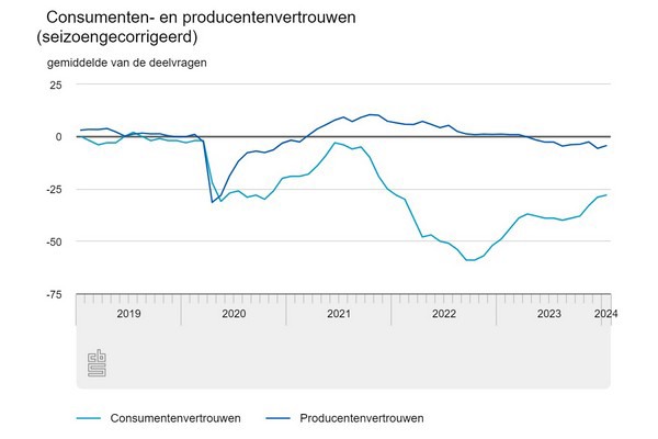 Consumenten waren in januari minder negatief dan een maand eerder. Hun vertrouwen lag echter nog ver onder het gemiddelde van de afgelopen twintig jaar. Het vertrouwen van producenten was in januari ook minder negatief dan in december. Het producentenvertrouwen lag ook onder het gemiddelde van de afgelopen twintig jaar.