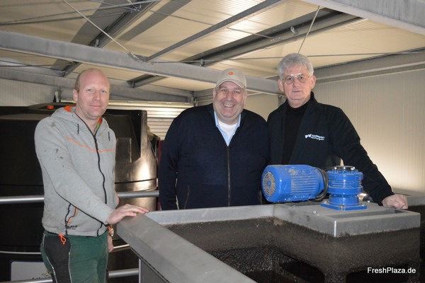 v.l.n.r. Dirk Heitmann (bedrijfsleider) en Patrick Pohlmann (CEO) van Gemüsebau Pohlmann en Robert Hoenderdos, Sales Manager voor de DACH-regio bij VAM Watertech