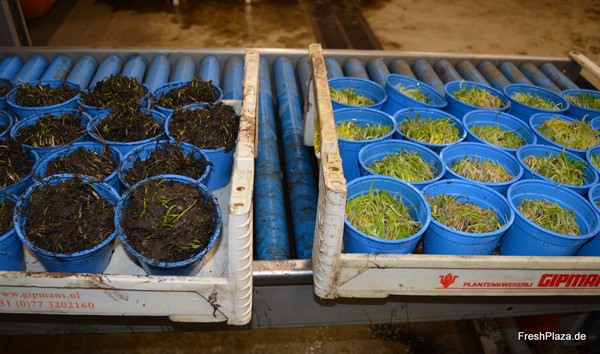 De potten voor en na het wasproces. Als gerenommeerde leverancier van bieslook teelt en verkoopt Pohlmann zowel Bioland en Naturland-producten (Bio-Anbau Patrick Pohlmann) als Demeter-potten (Gemüsebau Pohlmann). Ondanks de inflatie-gerelateerde daling van de vraag vorig jaar, is de vraag naar biologische bieslook in het afgelopen decennium sterk gestegen.