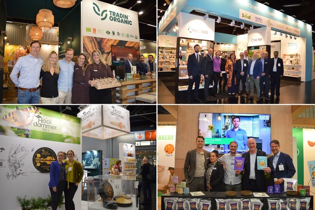 De stands van Tradin Organic, Bio4Pack (en andere partners in composteerbare verpakkingen), Hooidammer en DO-IT Organic.