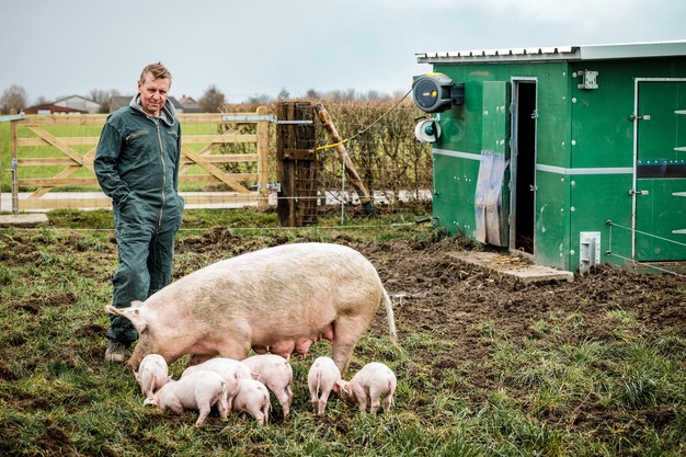 Biologische varkens hebben altijd toegang tot een buitenloop, maar een nieuw buitenhutsysteem maakt het nog diervriendelijker voor zeugen met biggen. De bestaande kraamhutten zijn vaak klein en kunnen zo stress veroorzaken bij de dieren. De belangrijkste oorzaak van sterfte van biggen is gelinkt aan de beperkte ruimte: de zeug kan bij het neerliggen haar biggen verpletteren. In de innovatieve buitenhut beschikken de biggen over een aparte warme kruipruimte. Ze zoeken die warmte op en zijn daardoor veilig voor verplettering. De zeug kan door de grotere ruimte bovendien meer natuurlijk moedergedrag vertonen en beter contact leggen met haar biggen. De boer kan dan weer rechtstaan in de mobiele buitenhut. Zo bezorgt hij minder stress aan een zeug die aan het spenen is en is hij zelf ook veiliger voor haar verdedigingsgedrag. Bovendien is dit nieuwe stalsysteem makkelijk te verplaatsen wanneer de wei rust nodig heeft.