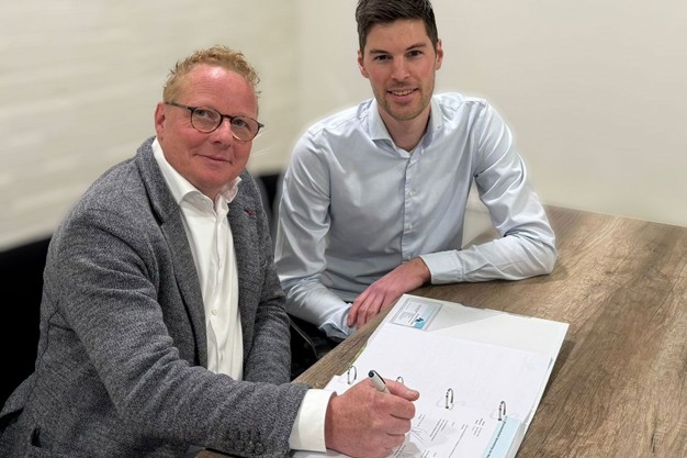 Aad ondertekent de overeenkomst. De bouw zal gerealiseerd worden door De Vries en Verburg uit Stolwijk.