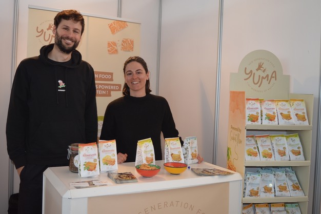 Michiel van Meervenne van Kriket met Livia Durazzo van Yuma op de BioXpo die 24 en 25 maart in Brussel gehouden werd.