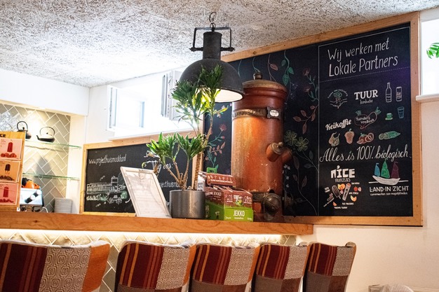 Jana geeft aan dat ze heel bewust voor een biologisch aanbod gekozen hebben. "Dit hebben we van begin af aan gedaan. Daar komt bij dat we zoveel mogelijk lokale ingrediƫnten verwerken. Dat lukt doordat we heel veel verschillende lijntjes hebben uitstaan. We schenken lokaal geproduceerde frisdrankjes, de koffie komt van een ondernemer in de buurt en een lokaal ijssalon draait speciaal ijs voor ons. En we hebben een plukabonnement bij Tuinderij Land in Zicht. En we werken zoveel mogelijk samen met lokale partijen."