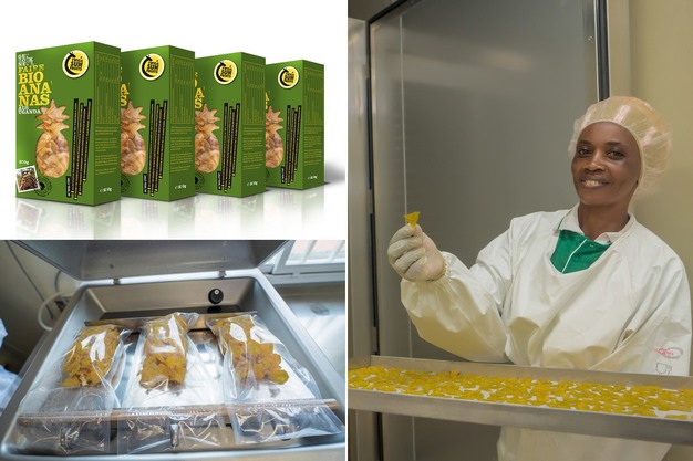 Nadat Twiga Sun Fruits in 2021 was opgericht, werd vorig jaar een innovatief, energieonafhankelijk droogsysteem van Innotech en verwerkingsapparatuur van Kronen geïmplementeerd en in gebruik genomen. Dankzij zonnepanelen en thermische zonne-energie kunnen de verse biologische ananasstukjes nu voorzichtig en duurzaam worden verwerkt. Tot nu toe werd het gedroogde fruit (ringen of stukjes) voornamelijk verkocht via de eigen online winkel van het bedrijf (www.twiga-sunfruits.org). Neyer: "De verhouding tussen het verse en het gedroogde fruit is ongeveer één op zestien: dit betekent dat we van twee ananassen van in totaal vier kilo een zakje van 250 gram overhouden. We streven nu naar een afzet van zeven ton per jaar, met een maximaal productievolume van negen ton per jaar."