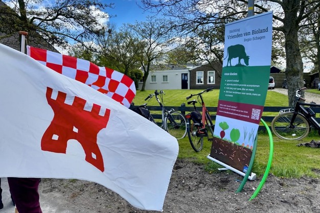 Tholen - Simco Kruijer, wethouder van de gemeente Schagen, trapte afgelopen vrijdag 26 april de campagne voor 'het Pronkstuk' af. Deze actie is een initiatief van de Anbi-stichting 'Vrienden Bioland Regio Schagen' (VBRS). De uitdaging is om voor 1 oktober 2024 via leningen en schenkingen 500.000 euro bij elkaar te krijgen om het Pronkstuk, 4 hectare agrarische grond aan de Westfriesedijk, in eigendom te verkrijgen. De stichting gaat deze grond per 1 januari 2025 verpachten aan biologisch tuinbouwbedrijf De Lepelaar in het Rijpje. Zij zullen de grond in drie jaar omschakelen en er biodynamische gewassen op gaan verbouwen.