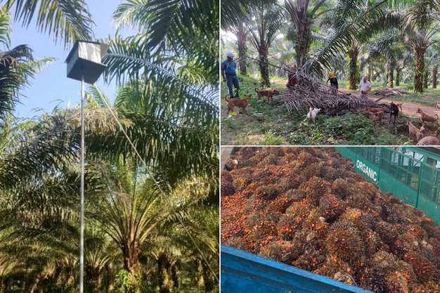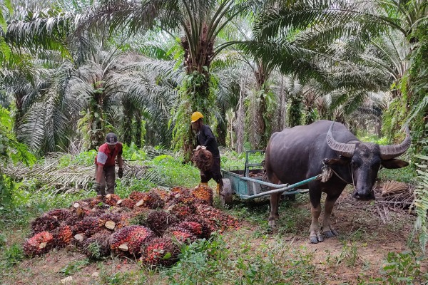 In plaats van transport met een tractor worden buffels gebruikt. Dezelfde buffels leven onder de palmen van het gras en bemesten meteen de grond. Een probleem zijn ratten die verzot zijn op de palmvruchten. Tussen de bomen staan uilenkasten, de uilen houden de ratten onder controle evenals speciale honden die hiervoor zijn afgericht. Elke lading palmfruit heeft een eigen opslag voor de verwerking van de palmvruchten en de palmkernels.