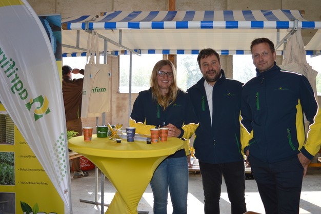 Sanne van den Brink, Jan Hoekman en Marijn van Dongen stonden vorig jaar namens Agrifirm in de kraam op de BioVelddag