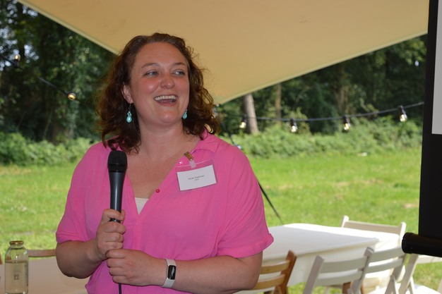 Herma Winnemuller (Landgoed Bleijendijk en BioBorrel) bedankt Sarah en Sepha Smit (RVO) voor de interessante presentaties
