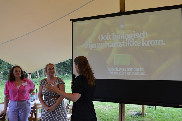 "Eén van de belangrijke dingen die we vanuit het onderzoek van Motivaction weten is dat de weerstand tegen biologisch zo hoog is, dat alles wat je zegt überhaupt niet gehoord wordt. Mensen zien het bio-logo, schrikken daarvan en dan maakt het niet uit welke argumenten je daarna geeft; ze horen je gewoon niet. Dus je moet echt iets doen om die weerstand te verlagen. Dat is wat we nu allereerst met de campagne doen", aan het woord is Sarah Stattman van team bio binnen het ministerie van LNV. Zij ging hier afgelopen donderdag op in tijdens haar presentatie voorafgaand aan het Vriendendiner (BioBorrel).