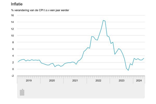 Consumentengoederen en -diensten waren in juni 3,2 procent duurder dan een jaar eerder, meldt het CBS. In mei was de inflatie 2,7 procent. De inflatie wordt elke maand gemeten als de ontwikkeling van de consumentenprijsindex (CPI) ten opzichte van dezelfde maand in het voorgaande jaar. Het inflatiecijfer van juni is hetzelfde als bij de snelle raming die op 2 juli is gepubliceerd.