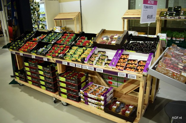 Het assortiment van de AGF-afdeling is indrukwekkend met meer dan 300 verschillende soorten groenten, waaronder 60 soorten tomaten, 147 soorten kruiden en 127 soorten fruit. Speciale aandacht gaat tegenwoordig uit naar het bio-assortiment, het is nog een klein deel van het aanbod, maar bij Hanos zien ze een groeiende vraag.