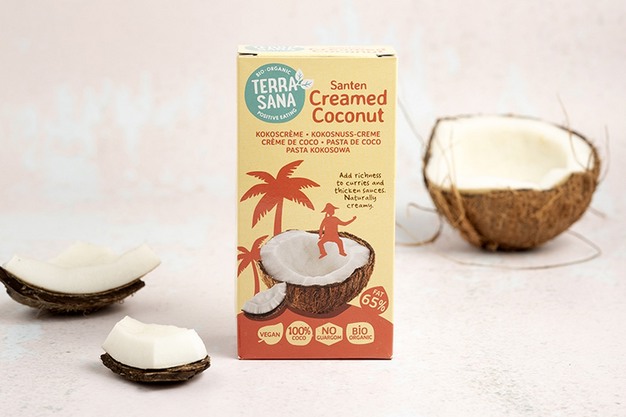 Tholen - Santen is één van de nieuwkomers bij TerraSana. Santen is kokos zonder water en wordt ook wel kokoscrème of 'creamed coconut' genoemd. Het is gemaakt van 100% kokosvruchtvlees en zit meestal in een doosje. "Santen maakt onze kokoslijn compleet, samen met de recent geïntroduceerde kokosslagroom - die heel lekker gaat - en kokosmelk light. En natuurlijk onze bestseller kokosmelk 80%. Santen wordt veel in de Aziatische keuken gebruikt. In Duitsland en Frankrijk gebruiken ze het meer en meer, vanwege een bredere beschikbaarheid van Aziatische producten en de populariteit van fusion", vertelt Ingrid Duifhuizen namens het in Leimuiden gevestigde TerraSana.