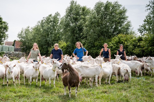 Vorig najaar was het precies 25 jaar dat het Reigershof het bio-certificaat kreeg, toen de eerste biologische geitenboerderij in Vlaanderen. "Sinds vijf jaar zijn we aan het doorschakelen naar biodynamische bedrijfsvoering. Opnieuw heel wat pionierswerk… We melken tweemaal daags 280 geiten, alle melk wordt op de boerderij verwerkt in een twintigtal verschillende rauwmelkse kazen. Deze worden in de boerderijwinkel verkocht, alsook aan marktkramers, restaurants en groothandels", vertelt Renaat Devreese.