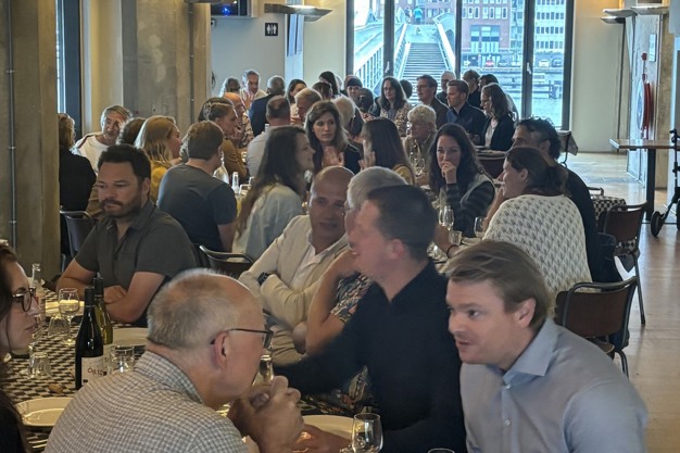 Zo'n 50 bezoekers genoten voorafgaand aan het inhoudelijk programma van een biologisch, vegetarisch diner begeleid door wijnen van Vine to Wine. In een zeer gemoedelijke sfeer werden nieuwe contacten gelegd en geanimeerde gesprekken gevoerd.