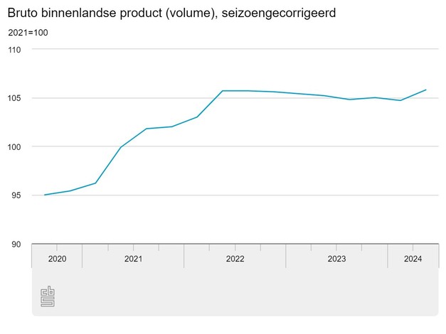 Volgens de tweede berekening van het CBS is het bruto binnenlands product (bbp) in het tweede kwartaal van 2024 met 1,0 procent gegroeid ten opzichte van het eerste kwartaal van 2024. Bij de eerste berekening, die is gepubliceerd op 14 augustus, kwam de groei ook uit op 1,0 procent. De tweede berekening van het bbp wordt ongeveer 85 dagen na afloop van het kwartaal gepubliceerd.