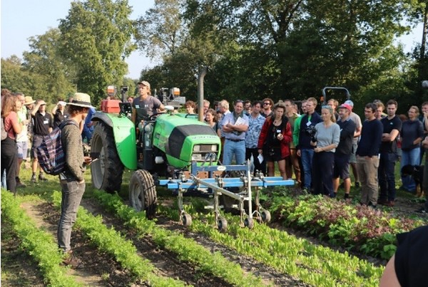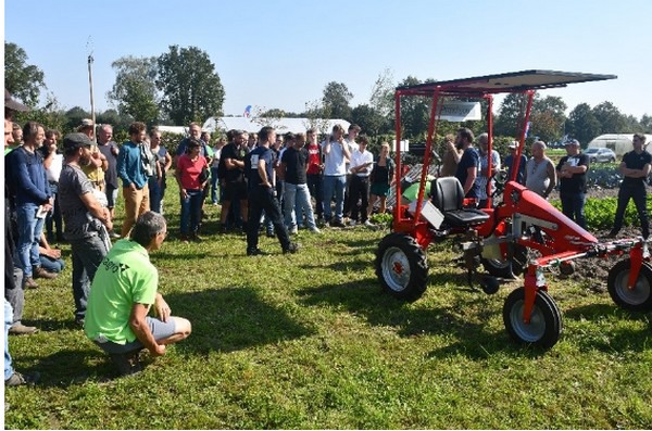 "Demonstraties van nieuwe machines voor onkruidbeheersing zijn steeds een belangrijk onderdeel van de dag. Maar ook andere thema's, zoals zaaien en vernietigen van groenbedekkers, kleinschalige pluimveehouderij, tunnelteelten en Johnson Su compostering kwamen deze keer aan bod via demonstraties en workshops. Een opvallende nieuwigheid was de elektrische werktuigdrager van De Blije Tuinder. Filmpjes van de demonstraties komen binnenkort online op het Youtube-kanaal van BIOpraktijk."