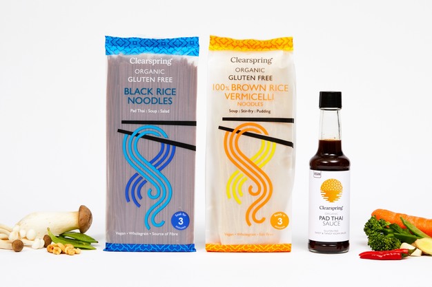 Clearspring heeft drie nieuwe producten toegevoegd aan zijn populaire Organic Thai range: biologische glutenvrije Zwarte Rijst Noedels, biologische glutenvrije 100% Bruine Rijst Vermicelli Noedels en de biologische, glutenvrije en plantaardige Pad Thai saus. Met de laatstgenoemde nieuwkomer heeft Clearspring naar eigen zeggen een primeur in het Verenigd Koninkrijk.