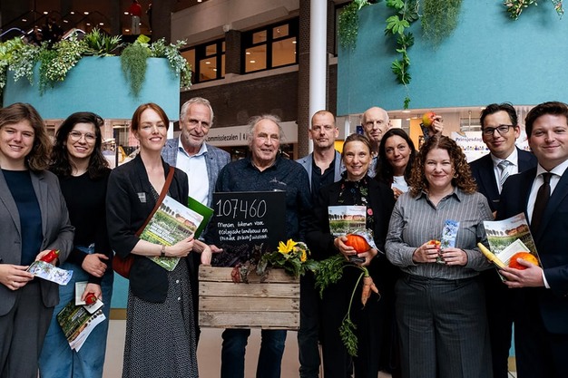 De petitie werd aangeboden samen met Bert van Ruitenbeek, directeur Stichting Demeter, Sanne Smeets van Caring Farmers en Piet van IJzendoorn van de federatie van Agro-ecologische boeren, die gezamenlijk duizenden 'groene boeren' vertegenwoordigen.