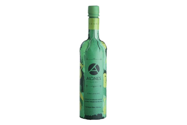 'In een markt zoals die van de olie, waar normen ongrijpbaar leken, schudt Aeons de gewoonten door elkaar en vervangt de glazen fles door een innovatieve verpakking: gemaakt van 94 gerecycled karton en met een speciale voering van voedselkwaliteit om de olijfolie in te bewaren. De verpakking ontworpen door het Griekse bedrijf heeft veel voordelen. De verpakking is 5 keer lichter dan glas en heeft een koolstofvoetafdruk die tot 6 keer kleiner is dan die van traditionele verpakkingen. Bovendien is het gemakkelijk te recyclen en behoudt het perfect de kwaliteiten van olijfolie.'