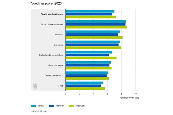 Nederlanders van 65 jaar of ouder maakten in 2023 de gezondste keuzes van voeding. Ze kozen het minst vaak voor ongezonde snacks en suikerhoudende dranken en aten het vaakst gezonde producten. 12- tot 18-jarigen aten het vaakst ongezond. Dit blijkt uit de Gezondheidsenquête/Leefstijlmonitor 2023 van het CBS, in samenwerking met het RIVM en het Voedingscentrum.
