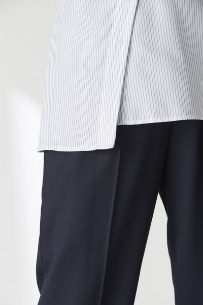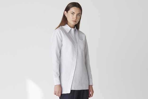 De blouse is ontworpen met de drukke, moderne professional in gedachten. Hij past perfect onder een pak voor een krachtige uitstraling in de boardroom, maar is net zo makkelijk te dragen in een casual outfit. De diagonale knooplijst en de lengte van de blouse zorgen ervoor dat je sowieso een statement maakt.