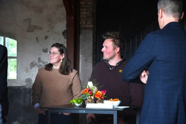 Tholen - De 100ste financiering vanuit het Investeringsfonds Duurzame Landbouw maakte het voor Joost van den Oetelaar en Mandy van den Boer mogelijk om hun biologische groentebedrijf Heerlijke Oogst te verhuizen naar een nieuwe locatie in Oirschot. Afgelopen vrijdag 11 oktober ontvingen de ondernemers Directeur Generaal Marten van den Berg van het ministerie van LVVN, om deze mijlpaal te vieren. Bij het werkbezoek aan het biologisch vollegrondsgroentebedrijf waren daarnaast gasten aanwezig die hebben meegeholpen aan de financiering van Heerlijke Oogst.