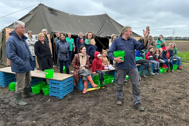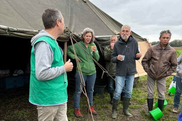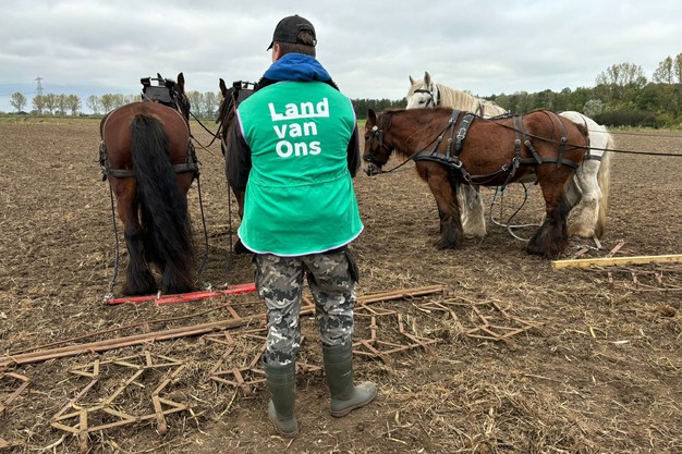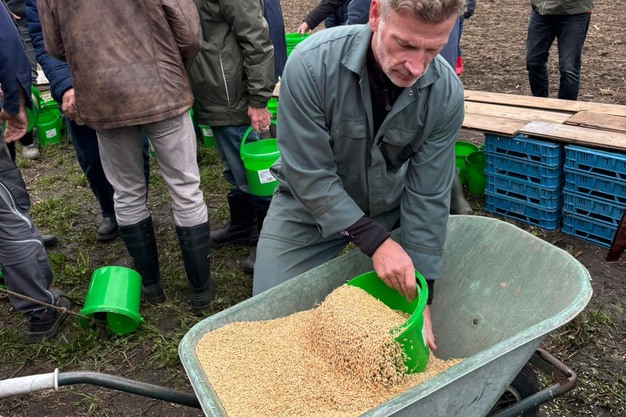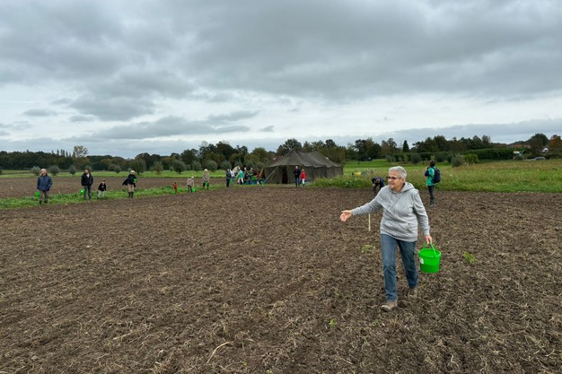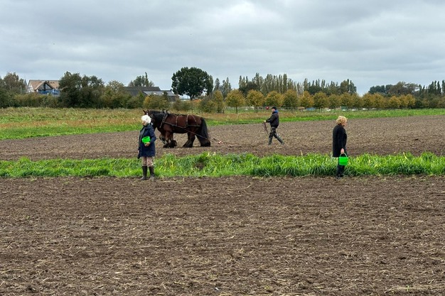 Afgelopen zaterdag 19 oktober was de demonstratie Toekomst zaaien op Land van Ons percelen in de Halsterse Beymoerpolder die sinds kort door De Kromme Lepel worden gepacht. Volgens Peet de Krom zijn telling waren er zo'n 40 belangstellenden, waarvan gemiddeld 27 zaaiers en ongeveer 9 tot 12 kinderen. Het was een gevarieerd, maar ook aandachtig en belangstellend publiek, volgens Peet. Er is ongeveer 4000 m² in totaal ingezaaid aan wintertarwe en wintergerst.