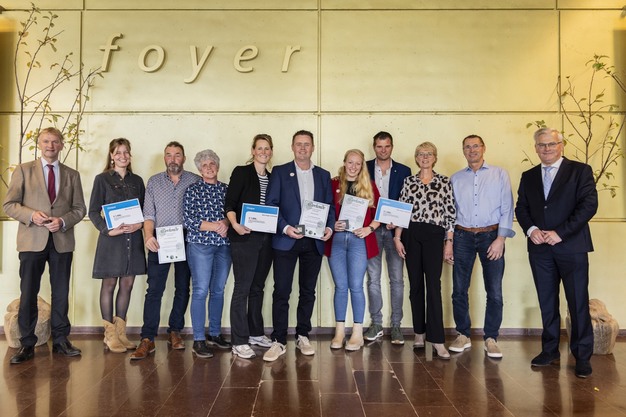 De Provincie Overijssel reikte op 18 oktober jongstleden de Waarde-Ring 2024 uit aan drie inspirerende boeren en ondernemers. Tot de prijswinnaars behoort Ruben Exterkate uit Bentelo. Hij werd geƫerd voor zijn overstap naar biologische varkenshouderij en zijn inzet om de kloof tussen boer en consument te verkleinen. Met open dagen en schoolbezoeken laat hij burgers kennismaken met de biologische varkenshouderij. Zijn samenwerking met landgoed Twickel voor een lokale kringloop bio benadrukt zijn focus op duurzaamheid in de landbouw. Om bij te dragen aan de verbinding tussen boer en samenleving realiseert Ruben ook een educatie- en vergaderruimte met zicht op de biggenstal. "Een mooie erkenning en waardering voor ons hele team", aldus Ruben.