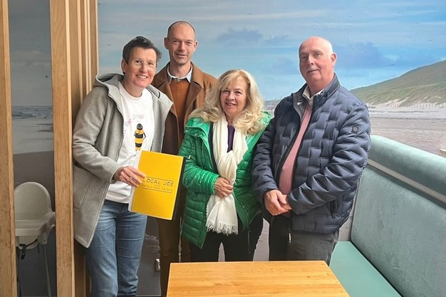 Van links naar rechts: Merle Koomans van den Dries en Taco de Rooij (Odin) en de voormalige eigenaren