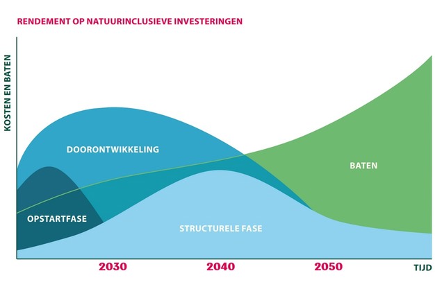 Opstartfase (tot en met 2026): extra inzet om natuur nadrukkelijker een plaats te geven in onze activiteiten en innovatie aanjagen. De opstartinvesteringen zullen gaandeweg afnemen wanneer er meer kennis en ervaring wordt opgedaan.