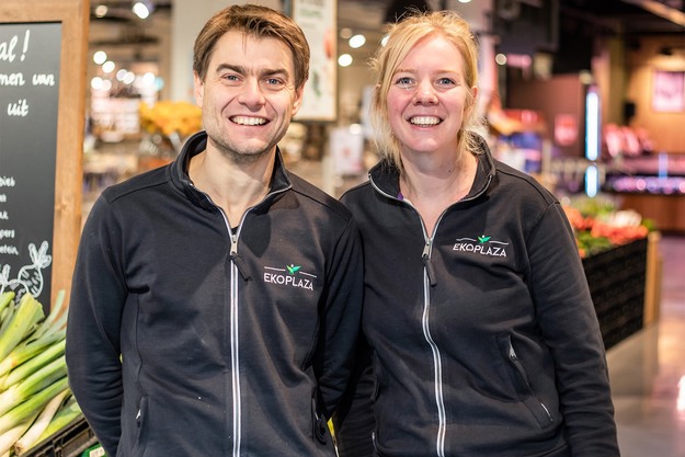 Pelle en Sybrich van Ekoplaza Alkmaar zorgen voor het startschot Bio Dichtbij