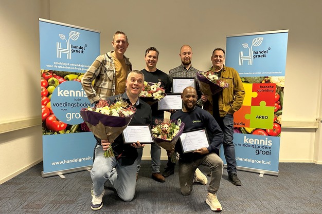 Tholen - De AGF-sector staat voor een uitdaging: hoe zorgen we ervoor dat cruciale kennis over kwaliteit behouden blijft in een tijd waarin de sector vergrijst en het aantrekken van jong talent stagneert? Bij Smeding Groenten en Fruit hoeven ze zich daar voorlopig geen zorgen over te maken. Afgelopen woensdag namen vier keurmeesters hun diploma's in ontvangst. Daarmee komt het team van volledig gediplomeerde keurmeesters op tien.