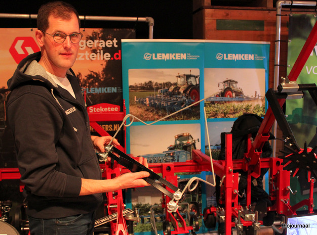 Henry Meijering van Lemken is trots op de ontwikkelde draadschoffel: "Minder schade aan de uien."