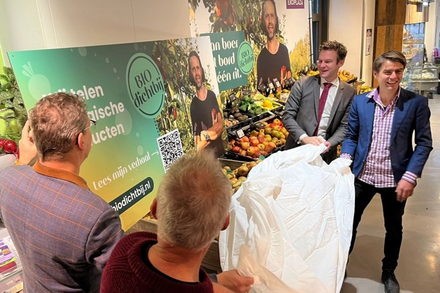 Op vrijdag 13 december verrichtte Jelle Beemsterboer, gedeputeerde Landbouw & Visserij van de provincie Noord-Holland de officiële openingshandeling voor de lancering van Bio Dichtbij. Dat gebeurde bij Ekoplaza in Alkmaar door het onthullen van een bord met de deelnemende biologische bedrijven. Bio Dichtbij heeft tot doel de biologische keten in Noord-Holland te verkorten en verstevigen. Het project moet ertoe leiden dat we in Noord-Holland meer biologisch geteelde producten uit eigen provincie gaan kopen. Daartoe liggen lokaal geteelde biologische producten nu bij vier Ekoplaza's in Noord-Holland. Bio Dichtbij is een initiatief van BioNH en wordt gesteund door de provincie Noord-Holland.
