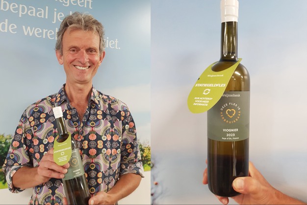 Elias Jeremiasse met statiegeld wijnfles