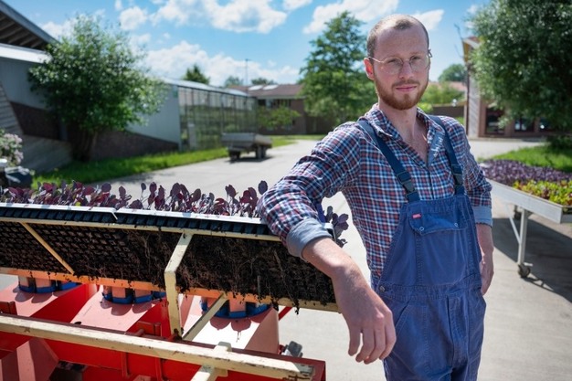 "Ik ben naar Warmonderhof gekomen omdat ik idealen heb. Zeker weten. Een wereld met duurzame landbouw, dat is de wereld waarin ik wil leven en waaraan ik een bijdrage wil leveren. Voor mijzelf en voor degenen die na mij komen. Ik wilde altijd wel boer worden, maar dacht dat dat niet realistisch was. Inmiddels weet ik wel beter. Ik heb verre familie met een tuiniersbedrijf. Het zit in mijn bloed dus, maar ik had er nooit in gewerkt. Ik studeerde aanvankelijk chemische technologie op het hbo. Dat gaat helemaal over gangbare landbouw, over kunstmest. Maar na eenmaal in de praktijk gewerkt te hebben vond ik het een uitzichtloos vakgebied. Toen ik onderzoek ging doen naar het klimaatakkoord van Parijs verloor ik mijn vertrouwen in die manier van denken. Ik raakte geïnteresseerd in regeneratie, CO2-opslag in de bodem, holistisch begrazen. Zo belandde ik bij Warmonderhof. Hier op Warmonderhof is landbouw leven. De stap van grond tot mond is hier zo klein mogelijk. Zo houd je mensen verbonden met hun voedsel, met de bodem en de dieren."